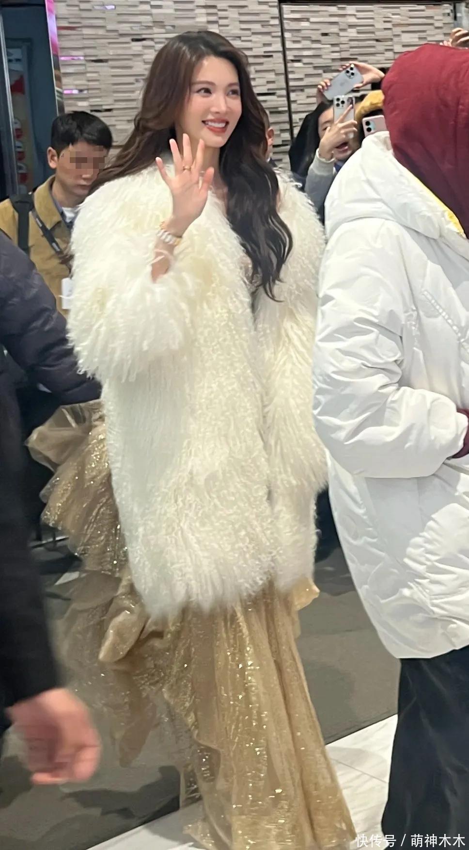 看金晨的穿搭造型,更能感受到这身造型的富贵气,白色长款皮草搭配鎏金长裙,正是网络最流行的“富家千金款”,而金晨身材高挑,气场和范儿拿捏得稳稳当当。